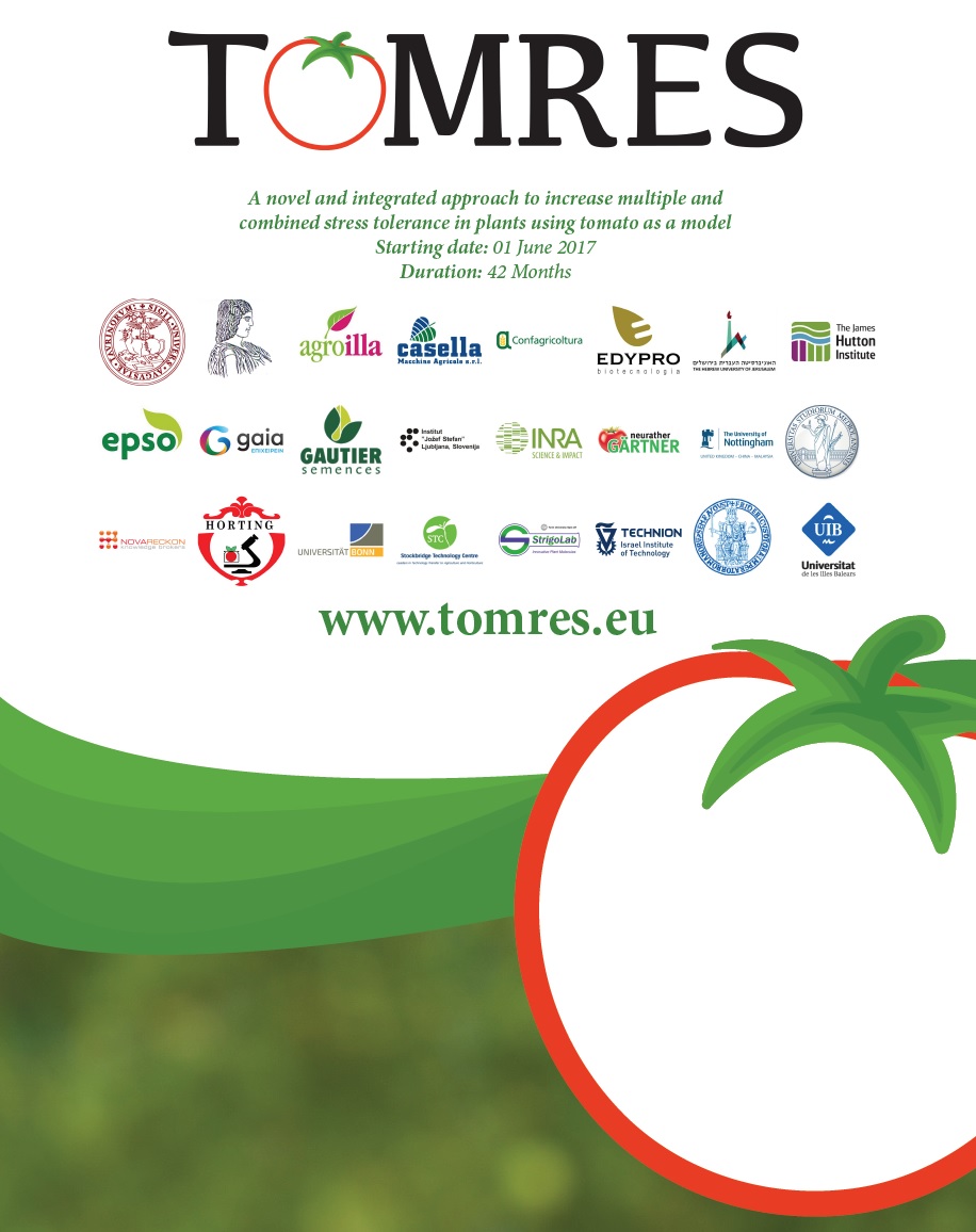 El proyecto “Un enfoque innovador e integrado para incrementar la tolerancia múltiple y combinada al estrés en plantas utilizando el tomate como modelo”, en definitiva TOMRES, está cofinanciado por el Programa Horizonte 2020 de la Unión Europea.